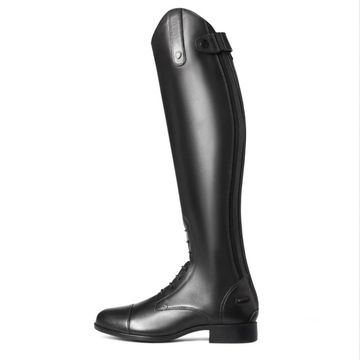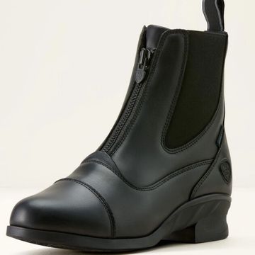 Featuring an elegant high Spanish cut topline, antique brass logo hardware, and a contoured fit around ankle to keep you looking sharp. The full-length YKK® back zipper with keeper and boot slide for ease of entry, along with the full-length elasticized panel and elastic gusset at knee make this an easy on-and-off boot for all day riding. The 4LR™ technology provides lightweight support and stability, while the Duratread™ sole helps to get the traction just right.