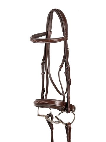Finely crafted in exceptional leather for the utmost in quality, Mondega’s Wide Noseband Hunter Bridle has exceptional attention to detail and precision stitching. The widened noseband of this bridle accommodates larger horses and allows for additional comfort. Great for both schooling or for in the show ring, the Mondega Wide Noseband Bridle provides detailed stitching and is sure to impress. Reins included